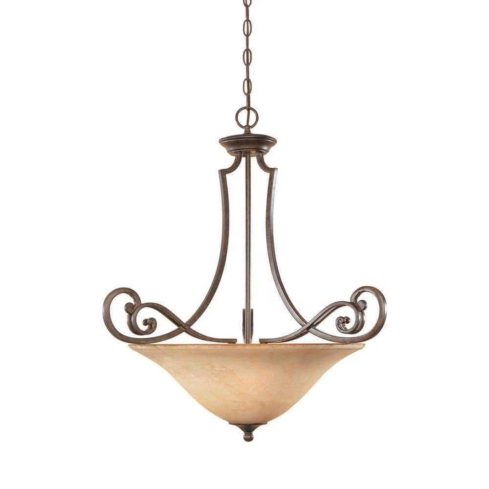 Vienna ceiling lights are specially designed with a unique style to complement the interior of any home. This collection features a forged sienna finish over clean lines and double scrolled arms that give a bold stylish look to the fixture. The warm amber glaze glass shade adds elegance and a warm, welcoming diffuse to the light. The durable steel construction ensures that this ceiling light will continue to perform well and look great for years to come. A 3 ft. decorative chain is included for easy installation.