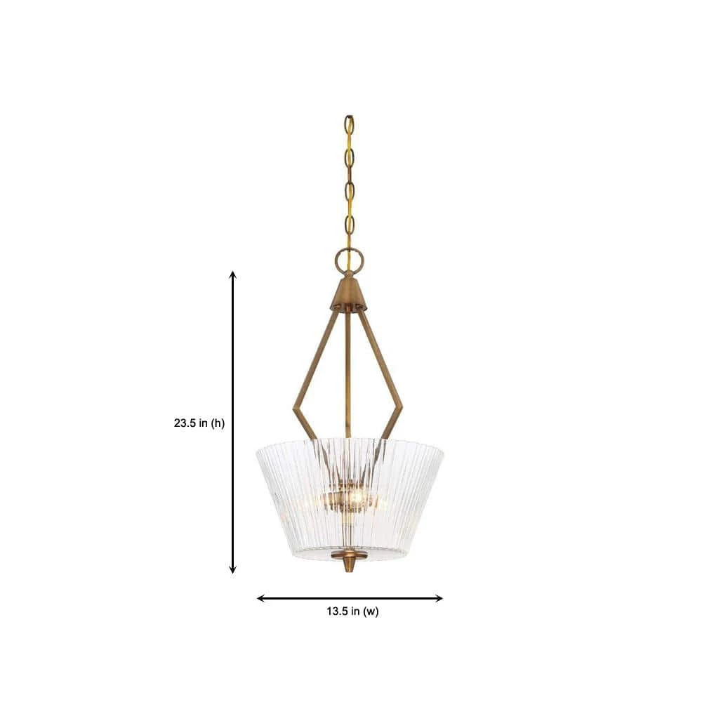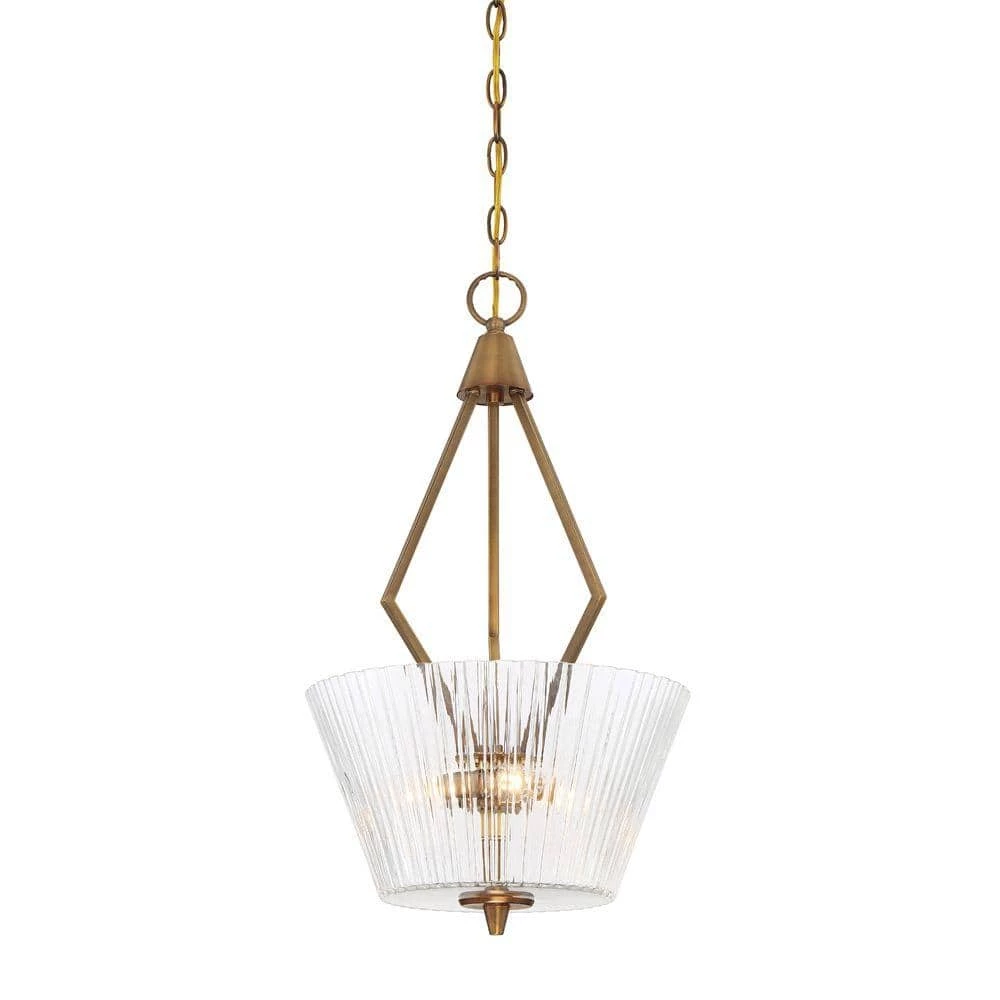 The Montelena Collection by Designers Fountain comes in Old Satin Brass with clear ribbed glass shade. This Transitional Inverted Pendant will complement the decor in any room of your home. Made with solid steel construction to look great and last for years to come.