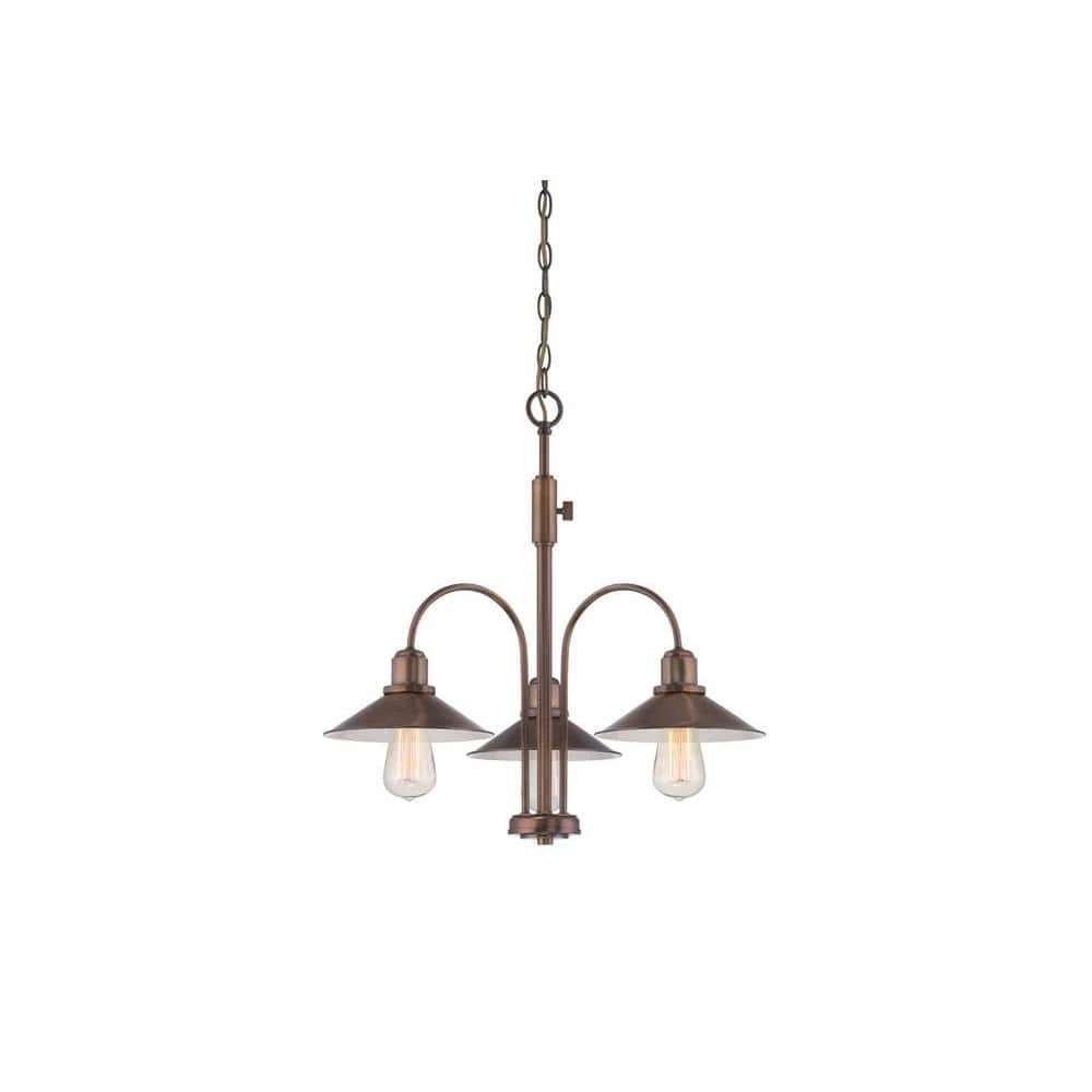 Newbury Station chandeliers feature the classic lines and shapes of an industrial era that has retaken hold in today’s home interiors. The classic Edison filament style lamp adds additional warmth and appeal. These fixtures are built with a protective old satin brass finish over a steel construction to look great and last for years to come. They come with all the hardware you need for easy installation.