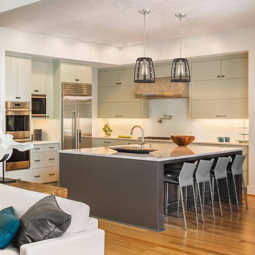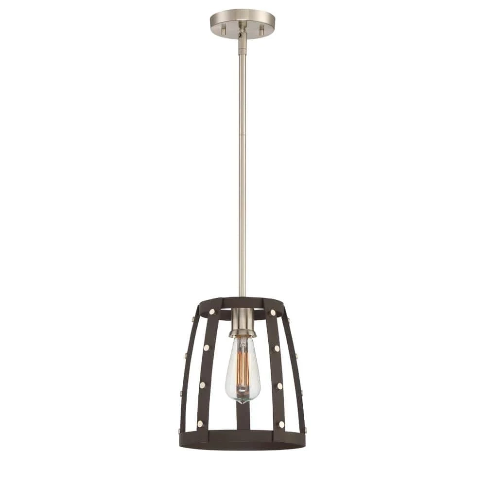 Clean modern industrial styling through a minimalistic approach that offers design appeal without the clutter. With its rustique finish, this mini pendant will be the star of your kitchen. Satin platinum accents add to the industrial feel. This mini pendant is designed for kitchen areas, above islands and open area counters, and it can be mounted on a sloped ceiling.
