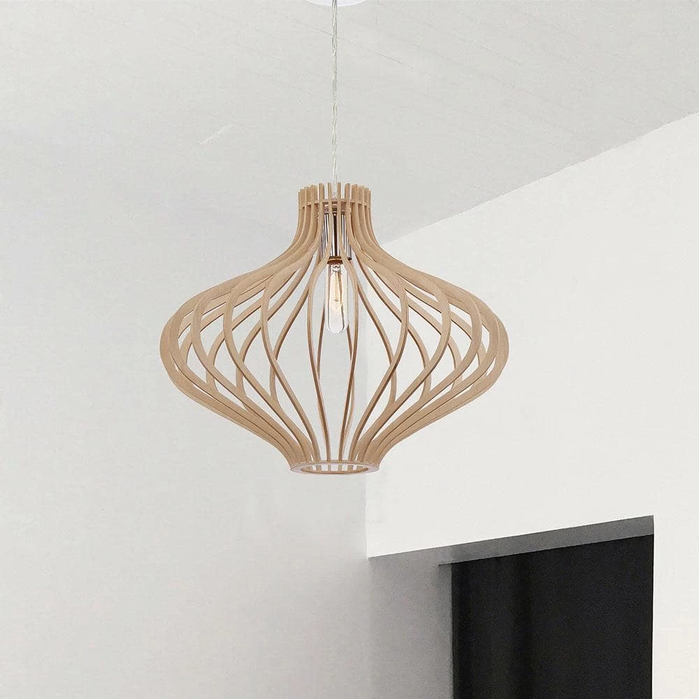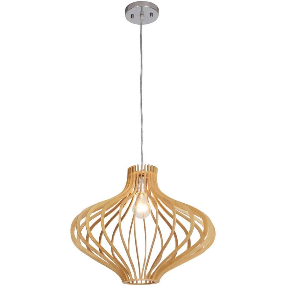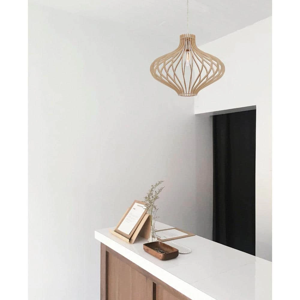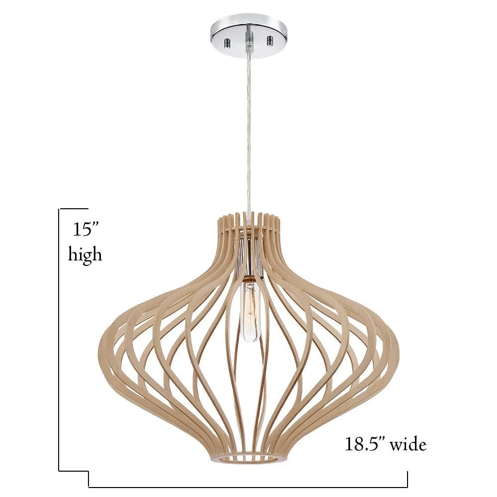 Sanaa Collection artistic style hanging pendants are a great way to bring the tropical feeling into your home. This pendant light features a modern take on the classic Hawaiian style, featuring a Kula wood finish and open shade. It comes with everything you need for easy installation.