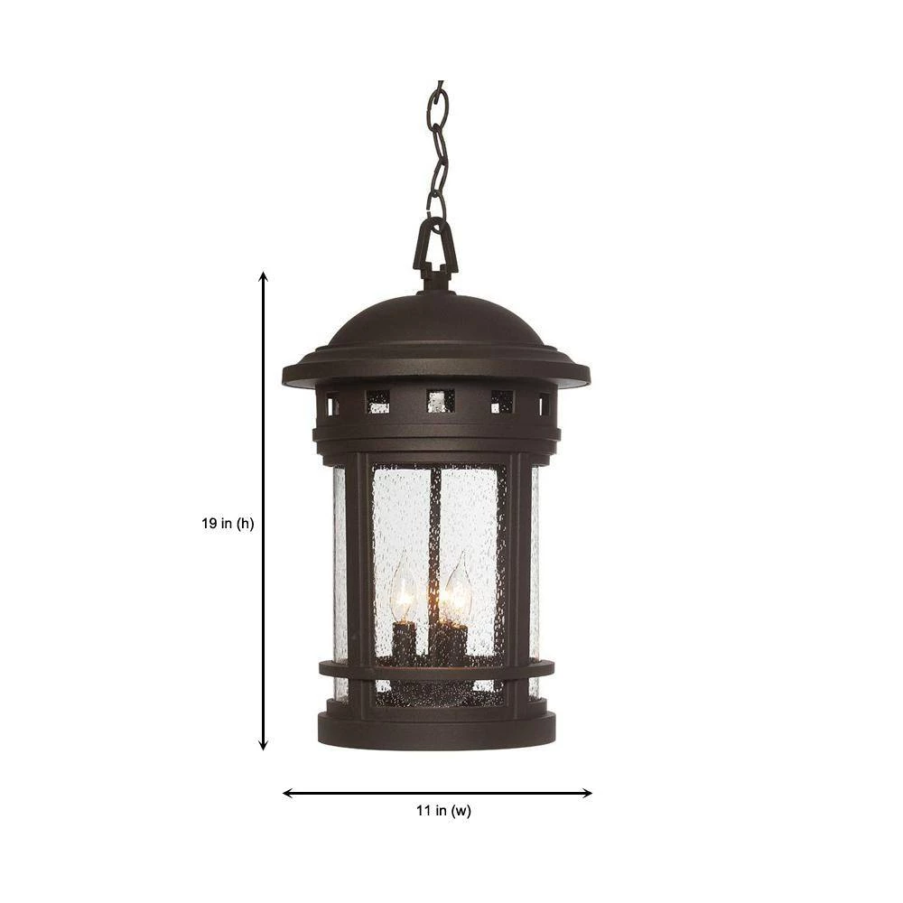 Mesa outdoor lanterns feature a bold, mission style design that complements the exterior decor of any home. The clear seedy glass works with the shape and detailing to provide a rustic look from the fixture and a warm glow from the light. The oil rubbed bronze finish is treated to prevent pitting, tarnishing, corrosion and discoloration. The sturdy, weather resistant cast aluminum construction and waterproof seal protect the lantern from harsh outdoor elements to ensure the long life of the fixture. These outdoor lanterns install easily and deliver welcoming, safe and reliable exterior lighting.