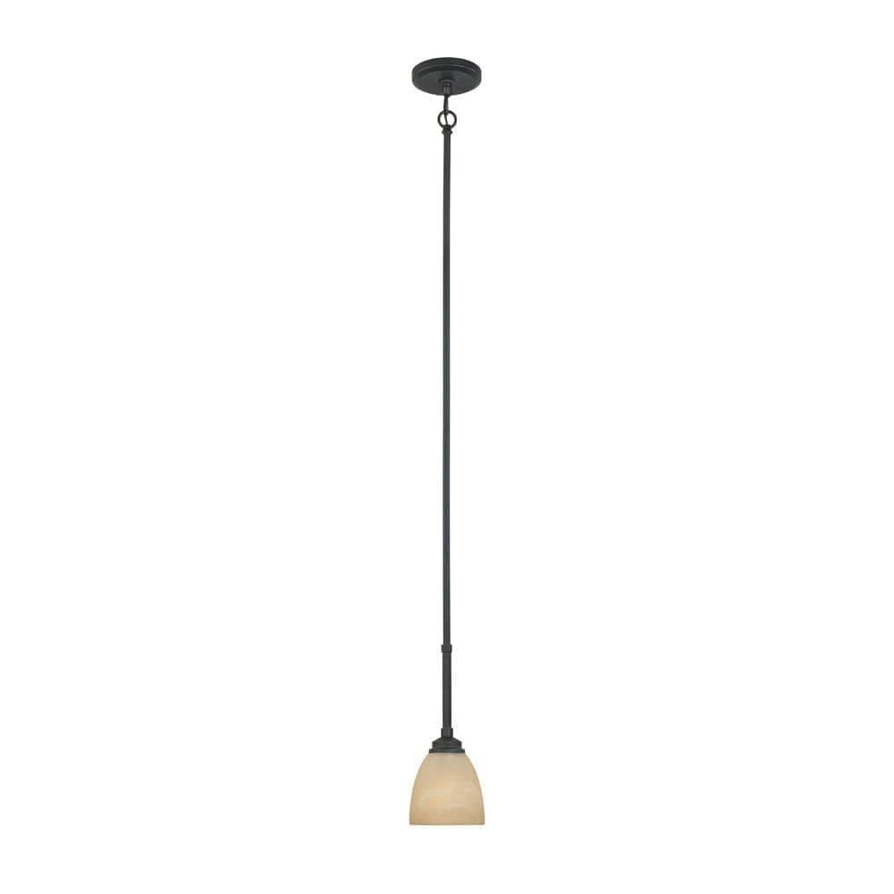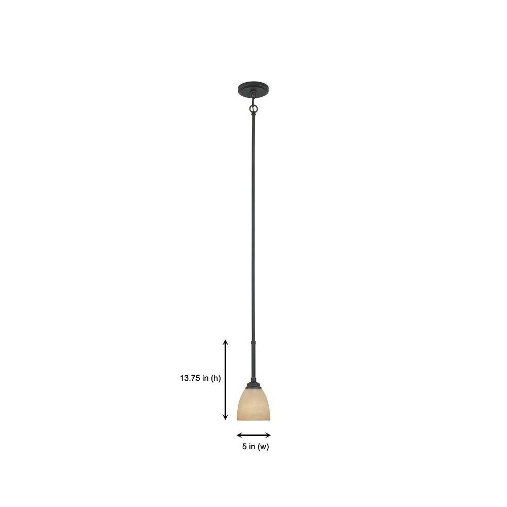 Manhattan pendant lights are specially designed with a unique style to complement the interior of any home. This collection features a burnished bronze finish over a clean design that defines simplicity as elegance. The tea stained alabaster glass shade adds a warm and welcoming diffuse to the light. The durable steel construction ensures that this pendant will continue to perform well and look great for years to come. Decorative 1 ft. chain and 6 in., 12 in., 18 in. stems are included for easy installation.