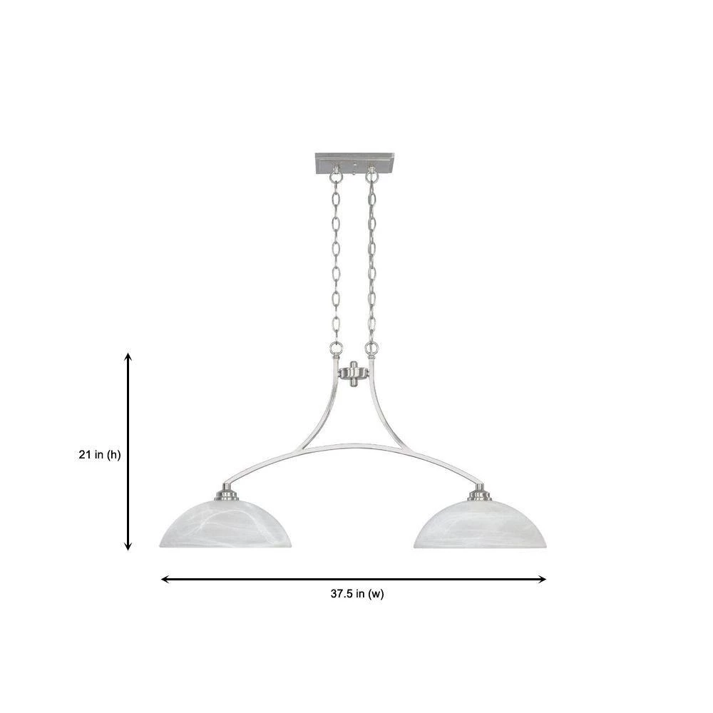 Manhattan island lights are specially designed with a unique style to complement the interior of any home. This collection features a clean design and modern satin platinum finish that define simplicity as elegance. The alabaster glass shades add a warm and welcoming diffuse to the light. The durable steel construction ensures that this island light will continue to perform well and look great for years to come. Decorative 3 ft. chains are included for easy installation.