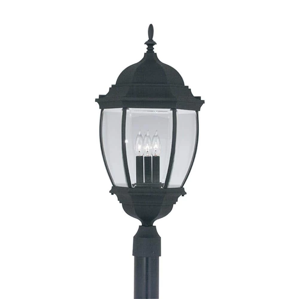 Hallowell outdoor post lanterns feature an elegant 6 sided design with exquisite scrolled detailing that complements the decor of any home. The clear beveled glass works with the finish and detailing to provide a classic look from the fixture and a warm glow from the light. The solid black finish is treated to prevent pitting, tarnishing, corrosion, and discoloration. The sturdy, weather resistant cast aluminum construction and waterproof seal protect the lantern from harsh outdoor elements to ensure the long life of the fixture. These outdoor post lanterns install easily and deliver welcoming, safe and reliable exterior lighting.