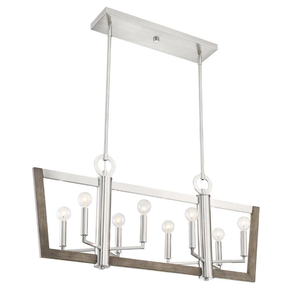 With the Tuxedo styling of its Satin Platinum and Urban Slate Wood finish, Westend offers a mid-century silhouette distinctly re-envisioned for today. This hanging chandelier is designed to be the star of your room. It’s designed for easy installation in dining and living areas.